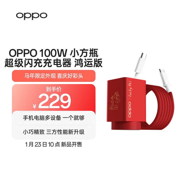 京东 OPPO 100W 小方瓶超级闪充氮化镓充电器套装鸿运版 229 元直达链接
